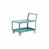 Low-Deck Trucks Raised handle make it easy to push these low rise trucks through crowded aisles. Ideal for picking items from lower shelves. 1-1/2″ x 1/8″ angle iron construction. Offset handle provides room for fingers when even when fully loaded. Top shelf is 31″ above floor. 14-gauge steel shelves. Floor break. 8″ x 2″ phenolic bolt-on casters, (2) Swivel and (2) Rigid support 2,000 lbs. All units come fully welded and ready for use. Gray powder coated finish is rust and acid resistant.