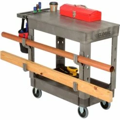 Pair of accessory hooks designed to be used with Industrial Service Carts. Hooks attach to the slotted legs allowing for increased functionality. This pair of hooks has been designed to easily carry 2×4’s or other needed supplies. Hooks have a inside dimension of 2-3/8″W and a 12-1/8″H front to securely hold items in place. Spool holder rod openings are built into the underside of hooks and can hold up to a 3/4″ O.D. rod to allow for easy storage and access to spools of wire, cable and other rolls. Actual Rod not included . Accepts Rod length 32-1/2″L for large 44 x 25-1/2 Carts and 26-1/2″L for smaller 38 x 17-1/2″ Cart.