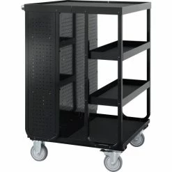 Streamline your shipping and receiving process with the Global IndustrialΒ Receiving Cart. This portable cart has both interior 25″ L x 10″ W enclosed shelves and 27″ L x 8″ W exterior shelves and a 27-1/2″ x 27-1/2″ top worksurface, making it ideal for labelling packages, storing tools, and checking in merchandise. You will find your dock-to-stock cycle times are shorter and reduce improperly labeled products. The cart’s powder-coated steel construction frame ensures long-lasting use. Top worksurface comes equipped with a textured rubber mat to prevent items from slipping off the cart as you move and work through your facility. Some assembly required. 1-Year Limited Warranty.