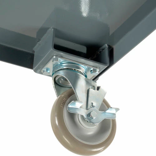 Includes the Global Industrialβ’ Non-Marking 5″ Polyurethane Caster Kit which includes 2 swivel wheels with brakes and 2 rigid wheels designed to easily bolt onto carts. Withstands a 1200 lb overall load capacity for strength and rigidity in any application. The cart is all welded and ships assembled. Made in the USA. 1 Year Limited Warranty.
