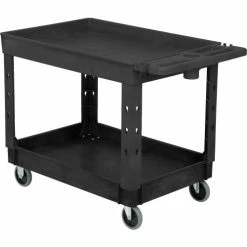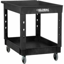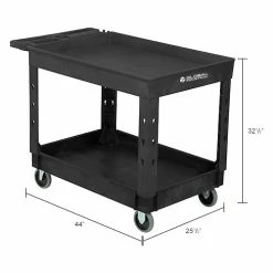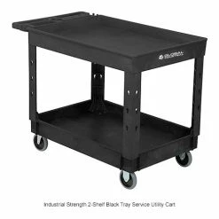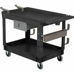 Support legs offer 4″ spaced slots on each side of the legs to hold specialized accessories to increase your productivity. Choose from hooks, spool holders or utility/trash bins, ladder holders and power strips all designed to improve the functionality of these carts, sold separately. 500 lb. capacity; 250 lb. per shelf evenly distributed. Easy assembly.