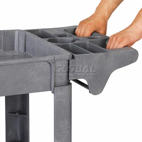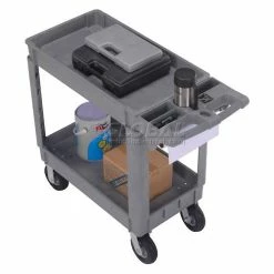 Heavy duty, tough structural foam plastic construction resists scratches, dents and cleans easily. 3″ deep trays help to retain cargo during transit. Lightweight cart maneuvers easily on 2 swivel, 2 rigid 6″ full pneumatic casters for a soft ride and easy rolling over rough surfaces. Assembles easily. Personalize your plastic utility service cart with our great accessories. 1 Year Limited Warranty.