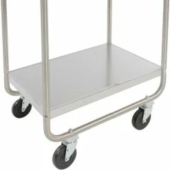 This Lakeside® Tubular Stainless Steel Utility Cart features a tubular frame for structural strength. This stainless steel cart is made with U-shaped, welded tubular stainless steel for superior strength. 20 gauge stainless steel shelves have reinforced edges for heavy loads and load drops. Legs are made of heavy 16 gauge stainless steel. Easy-to-clean. Moves easily on swivel casters. 500 lb. capacity. NSF listed. 2 shelf quantity. 500 lb. capacity. 30″L x 20″W x 35-3/4″H overall. NSF Listed.