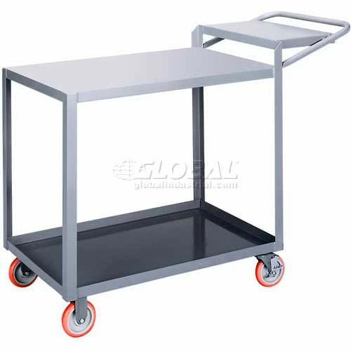 Order Picking Truck 1200 lbs. Capacity – Convenient 12″ long writing shelf for paperwork adds to the versatility of this truck. Bottom shelf has a 1-1/2″ retaining lip, and the top shelf is available with a lip, or flush. The 2 swivel and 2 rigid casters feature non-marking 5″ diameter polyurethane wheels with ball bearings. Swivel casters have wheel brakes. Top shelf height 35″, writing shelf height 39″.