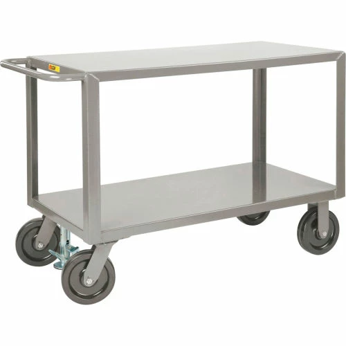 All-welded construction features flush 12 gauge steel shelves with extra reinforcement and 2″ x 2″ corner angles for increased capacity. Top shelf is 36″ high. Clearance between shelves is 23″ for 2-shelf models, and 10-1/2″ for 3 shelf models. More maneuverable with heavy-duty 8″ phenolic kingpinless casters. Durable powder coated finish.