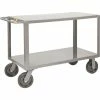 All-welded construction features flush 12 gauge steel shelves with extra reinforcement and 2″ x 2″ corner angles for increased capacity. Top shelf is 36″ high. Clearance between shelves is 23″ for 2-shelf models, and 10-1/2″ for 3 shelf models. More maneuverable with heavy-duty 8″ phenolic kingpinless casters. Durable powder coated finish.