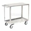 Little Giantยฎ durability in an economical shelf truck. These all welded units ship fully assembled. Features include heavy 12 gauge shelves and non-marking 5″ polyurethane casters with ball bearing wheels. Bottom shelf has retaining lip for small parts. Top shelf is 35″ above ground, and is available with lip up or down (flush top). Overall height 35″.