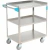 This industrial grade cart offers a generous work surface with plenty of space that suits a variety of needs; ideal for food service applications. Molded plastic shelves and legs won’t stain, scratch, dent or rust and offer 500 lb. of weight capacity (evenly distributed loads). Rolls smoothly with 5″ ball-bearing swivel casters (2 with locking brake). Assembles easily. Made in USA. Lifetime Limited Warranty!