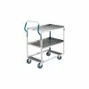 All-welded aluminum utility cart, also known as a correctional cart, features a heavy-duty design to transport loads up to 2000 lbs. (1500 lbs. per shelf). Cart framework is constructed of 1-1/2″ x 1-1/2″ x 0-1/16″ wall aluminum tubing. Shelves are constructed of 0-1/16″ thick aluminum sheet and feature lips on 3 sides to help retain cargo during transit. Rolls smoothly with 6″ rubber casters (2 swivel, 2 rigid). Lifetime Warranty against rust and corrosion. NSF Approved.