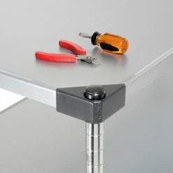 Assembles quickly without tools. Shelves adjust on 1″ increments. Numbered posts allow quick positioning at desired height. Convenient 4-way access. 5″ polyurethane wheel swivel casters with donut bumpers. Solid galvanized steel, 18-gauge, shelves are corrosion resistant for long life and double walled for maximum rigidity and strength.