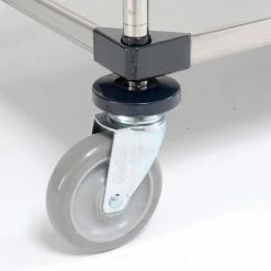 Assembles quickly without tools. Shelves adjust on 1″ increments. Numbered posts allow quick positioning at desired height. Convenient 4-way access. 5″ polyurethane wheel swivel casters with donut bumpers. Solid galvanized steel, 18-gauge, shelves are corrosion resistant for long life and double walled for maximum rigidity and strength.