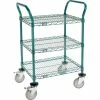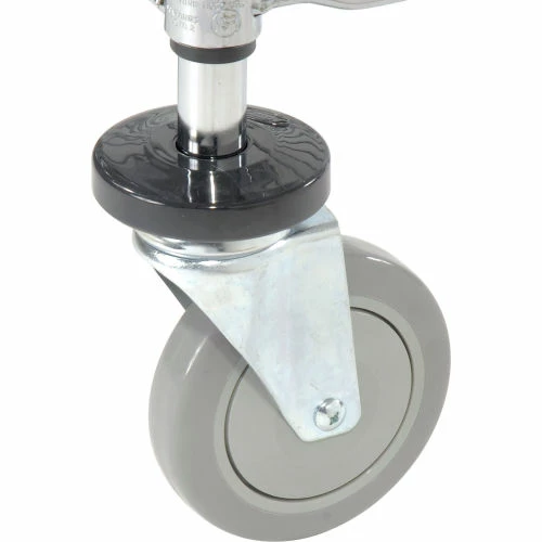 - Includes 2 shelves, 2 U handles, snap-on sleeves and polyurethane swivel casters, two with brakes