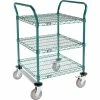 - Includes 2 shelves, 2 U handles, snap-on sleeves and polyurethane swivel casters, two with brakes