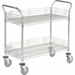 - Includes 2 shelves, 2 U handles, snap-on sleeves and polyurethane swivel casters