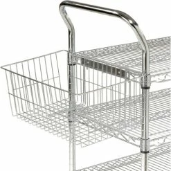 - Includes 3 shelves, 2 U handles, snap-on sleeves and polyurethane swivel casters, two with brakes