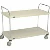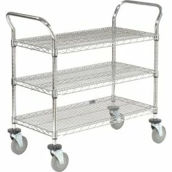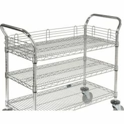 - Includes 3 shelves, 2 U handles, snap-on sleeves and rubber swivel casters