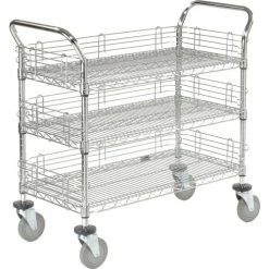 - Includes 3 shelves, 2 U handles, snap-on sleeves and polyurethane swivel casters