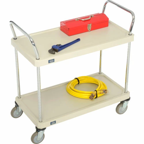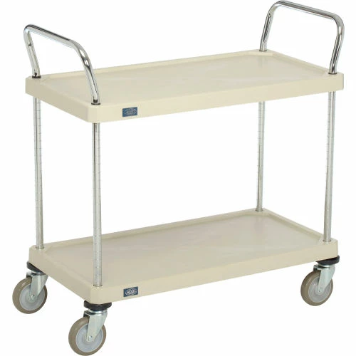 - Includes 2 shelves, 2 Chrome U handles, snap-on sleeves and polyurethane swivel casters, 2 with brakes