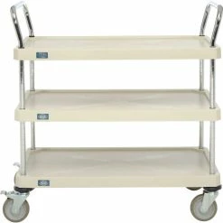 - Includes 3 shelves, 2 Chrome U handles, snap-on sleeves and polyurethane swivel casters, 2 with brakes