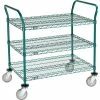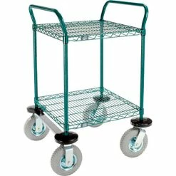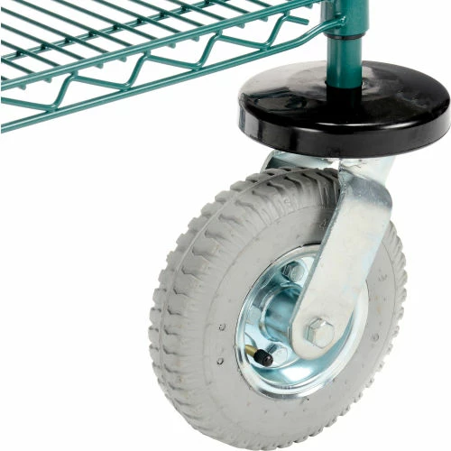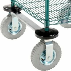 - Includes 2 shelves, 2 U handles, and 4 pneumatic casters, 2 rigid, 2 swivel, 1 tie bar