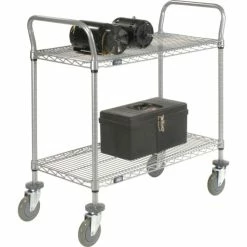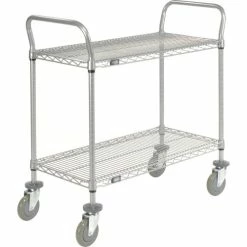 - Includes 2 shelves, 2 U handles, snap-on sleeves and polyurethane swivel casters