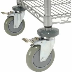 - Includes 2 shelves, 2 U handles, snap-on sleeves and polyurethane swivel casters, 2 with brakes