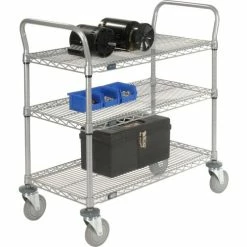 - Includes 2 shelves, 2 U handles, snap-on sleeves and polyurethane swivel casters