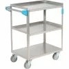 Economic Polymer Utility Carts are great for using practically anywhere, including shops, restaurants, schools, and offices. This multi-purpose, economical two shelf utility cart comes complete with smooth, easy-to-clean polyurethane shelves that attach to chrome-plated posts and feature a molded-in lip to contain messy spills. Resting on four 4″ resilient rubber swivel casters, this is a cart with shelves that is economical and also easy to maneuver. The shelves have a 150- lb. capacity and a 23″ clearance. This economical utility cart with shelf stands 33-1/4″ high and is available in gray. This product is NSF certified and it ships unassembled.
