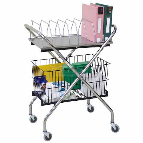 Versatile utility cart for use in many locations throughout your facility. Features 1′ metal tubing on 3″ silent casters. the scissor frame easily folds flat for storage and shipping. Holds up to two 6″ black powder coated baskets, 12″ black powder coated baskets, 6 capacity storage racks, or 8 capacity storage racks (all sold separately). You can mix and match to fit your facilities needs. 5 Year Limited Warranty.