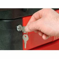 Durable and lightweight structural foam will not rust, dent, chip or peel. Rounded corners to avoid marring walls. Easy rolling 5″ non-marking, polyurethane casters, 2 fixed and 2 swivel with brakes. Ergonomic, easy grip handle for comfortable maneuvering includes built in tool and component storage as well as cup holder. 4-1/4″ back and end stops to keep parts from rolling off work surface. Central locking system for secure storage with one turn of a key. Full extension 4-1/8″H drawers glide easily on ball bearing slides with 40 lb. capacity each. 3 outlet surge protector with 15′ cord included. 31″H worksurface, 38″H overall. Easy assembly.